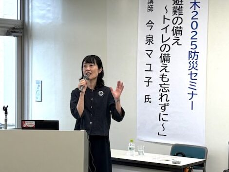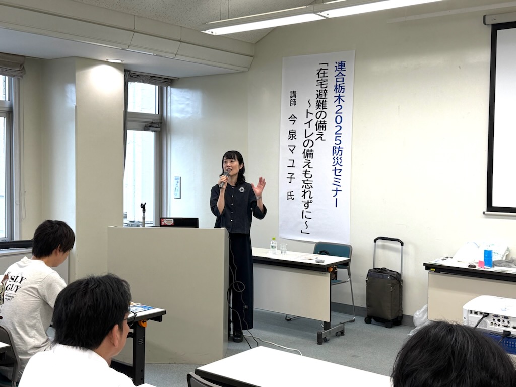連合栃木は9月13日、「2025防災セミナー」を開催し、27名が参加しました。講師に、管理栄養士・防災士・災害食専門員でもある株式会社オフィスRMの今泉マユ子代表取締役をお招きし、「在宅避難の備え~トイレの備えも忘れずに~」と題して講演いただきました。