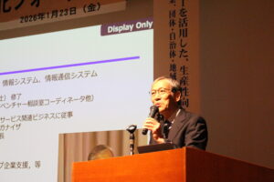 講師は情報工学分野の技術士、林雅弘さん。生成AIを活用した生産性向上をテーマに講演いただきました。林さんは、人口減少や人手不足が進む中で、生成AIを「人に代わる存在」ではなく「人の知的活動を支援する道具」として活用する重要性を強調。書類作成やデータ分析、問い合わせ対応など定型業務の自動化により、現場が本来注力すべき業務に時間を割けると具体例を示しました。あわせて、セキュリティや情報漏洩、ハルシネーション(事実でない内容をもっともらしく作り出してしまう現象)への注意、人材育成とリスキリングの必要性にも触れ、「まずは使って慣れる姿勢がDX推進の第一歩だ」と呼びかけた。