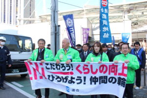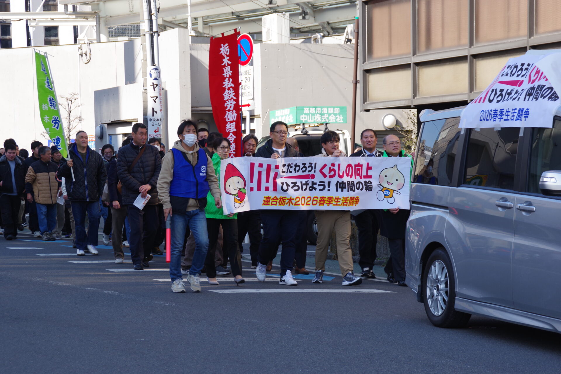 集会後は、宇都宮市内の大通りをデモ行進し、春闘をアピールしました。