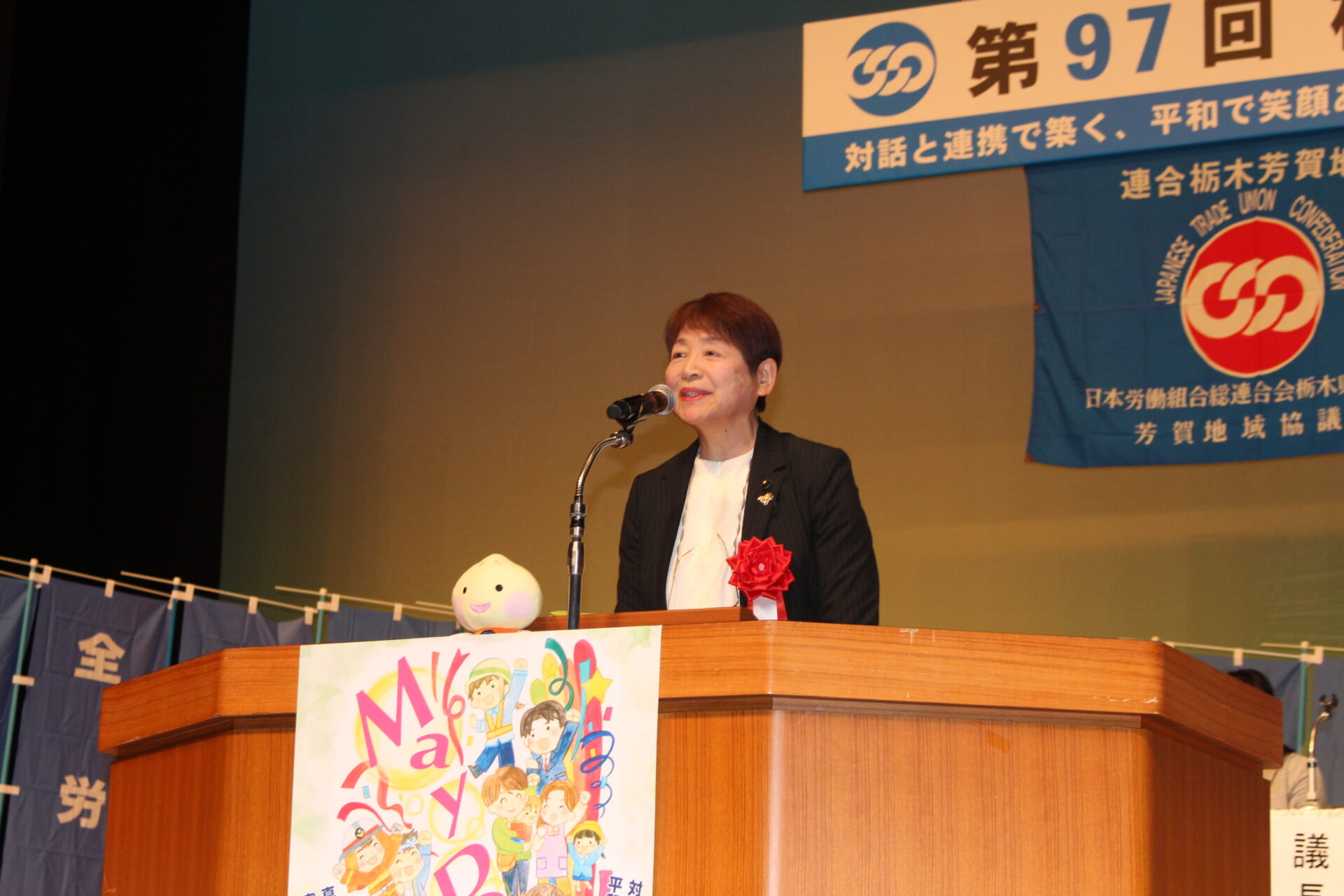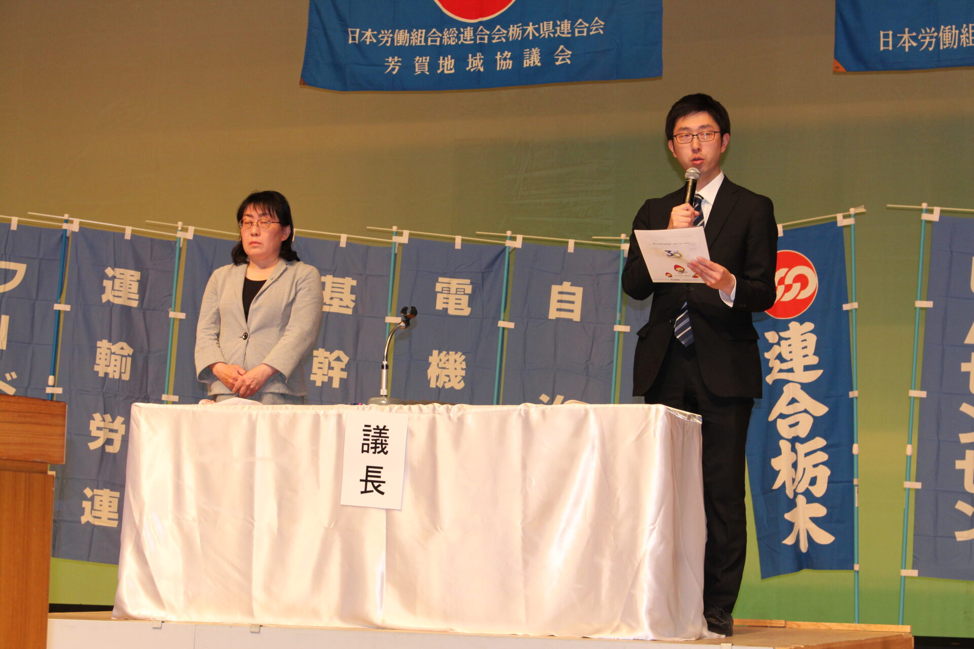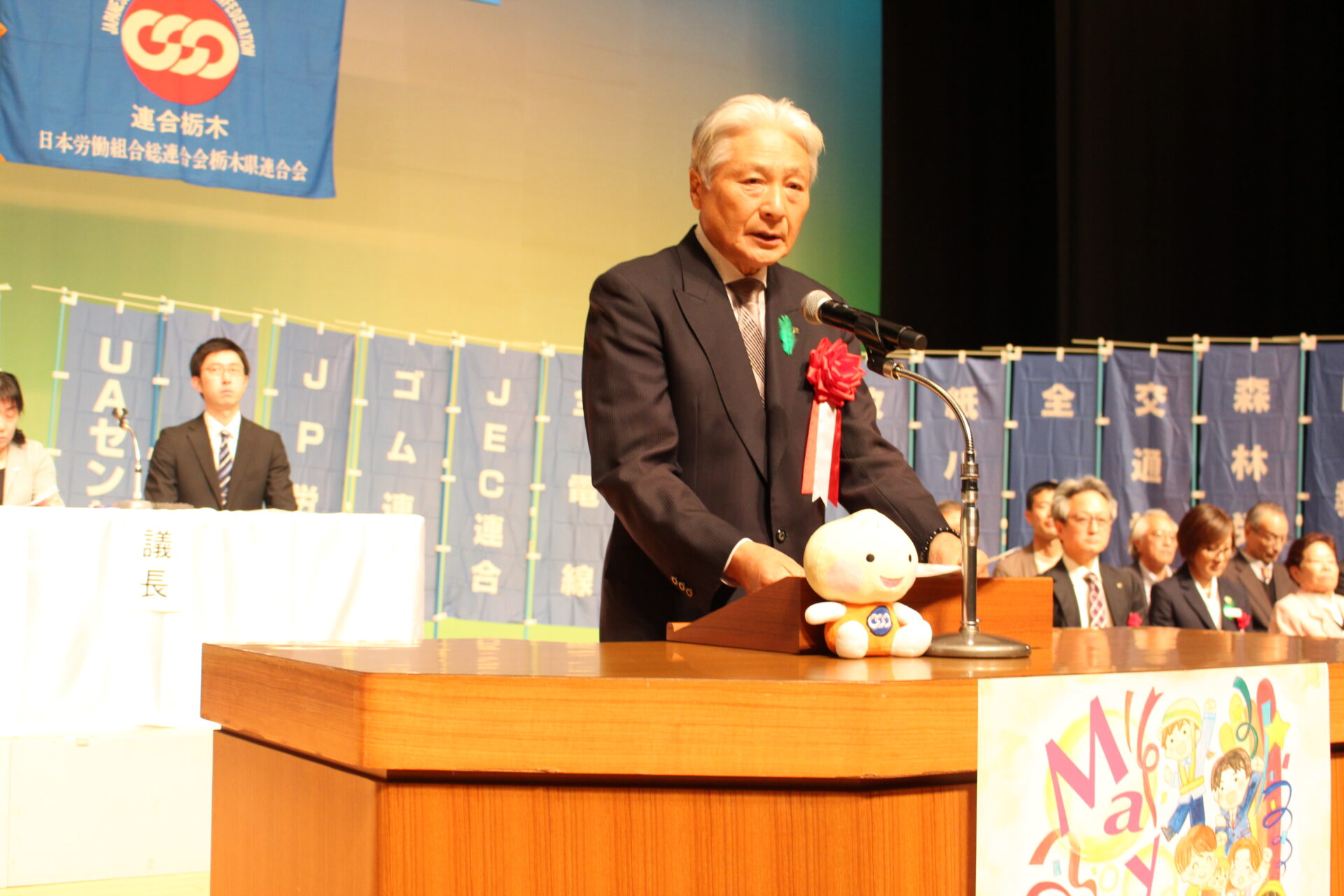 4月25日(土)、第97回栃木県メーデー中央大会が真岡市のKOBELCO真岡いちごホールにて開催されました。