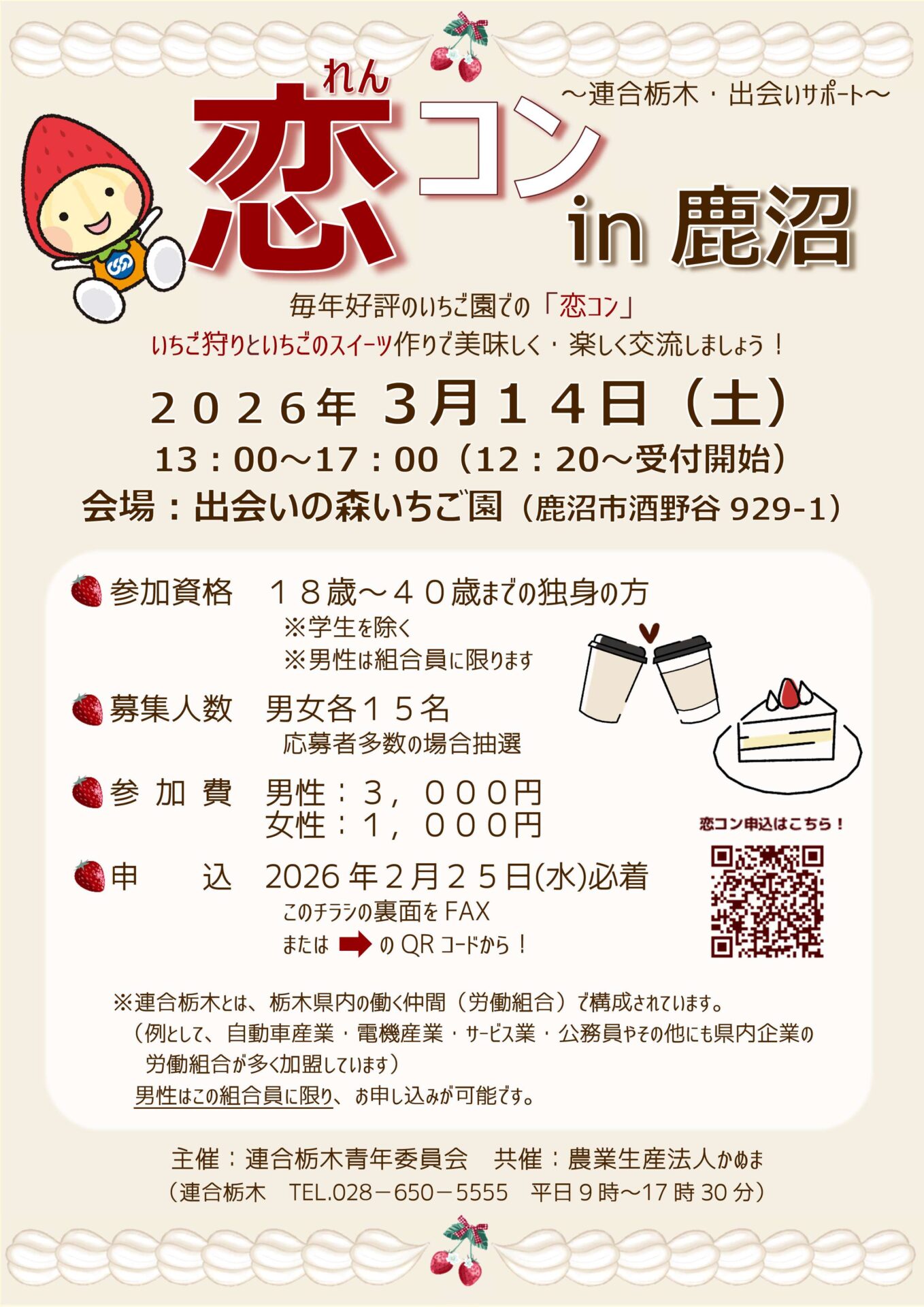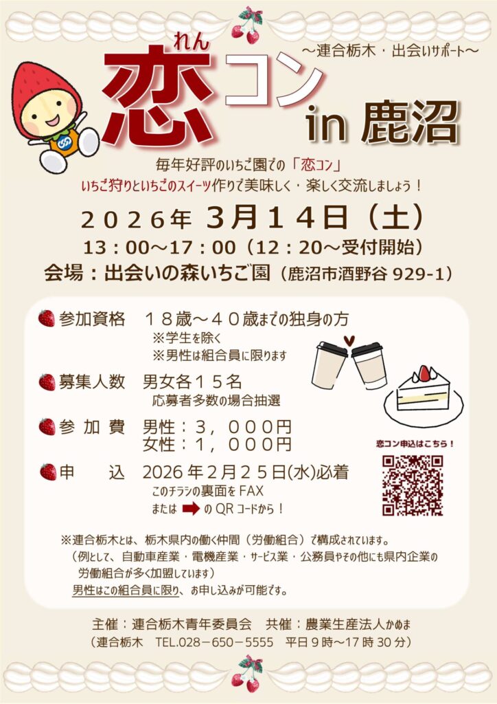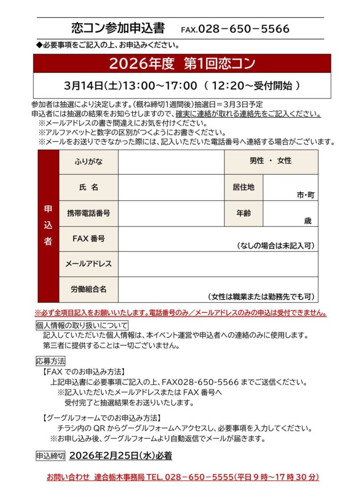お問い合わせ:連合栃木「恋コン」事務局(028-650-5555)